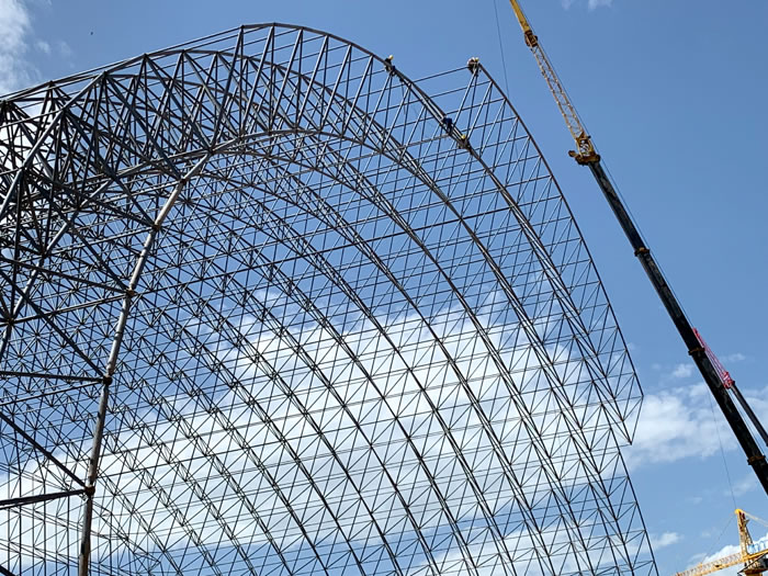 (2)网架加工前应对现场尺寸进行复测,确认无误后方可进行加工、安装;网架制作、运输、安装应遵守《空间网格结构技术规程》JGJ7-2010、《钢网架萧县螺栓球节点》JG/T 10-2009、《钢网架萧县螺栓球节点用高强度螺栓》 GB/T 16939-2016、《萧县钢结构萧县工程萧县施工规范》 GB50755-2012、《萧县钢结构萧县工程施工质量验收标准》 GB50205-2020。